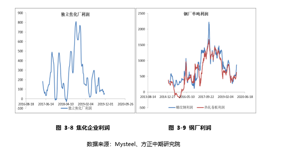 按照钢联统计的利润数据看:2019年我国独立焦企单吨生成利润在50-250元,中枢位置在150元附近。2019年焦化企业利润相较于2018年明显回落,焦企在利润偏低的情况下,焦钢利润博弈一直是市场关注的焦点。由于我国独立焦企占比较高,同时民营企业居多,行业集中度相较目前上游煤炭企业和下游钢铁企业而言处于偏低的水平。在行业集中度偏低的情况下,决定焦炭企业议价能力较弱,煤焦钢产业链利润上焦化企业整体处于偏低水平。2020年焦化企业行业集中度难以大幅提升,在煤焦钢产业链上整体仍处于弱势地位,2020年整体利润将难有大幅改观,整体仍处于偏低的水平。但焦炭产能退出时间和执行力度将对焦企利润有较大影响。