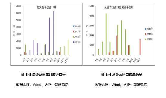 2018年进口炼焦煤占我国总体消费量的12.12%,2019年前9个月我国炼焦煤总消费量的14.78%,进口占比较少,但是我国炼焦煤的重要补充。2020年进口煤政策(即蒙煤通关以及澳煤集疏港的顺畅与否),将会是国内主焦供给端不可忽视的因素之一。
