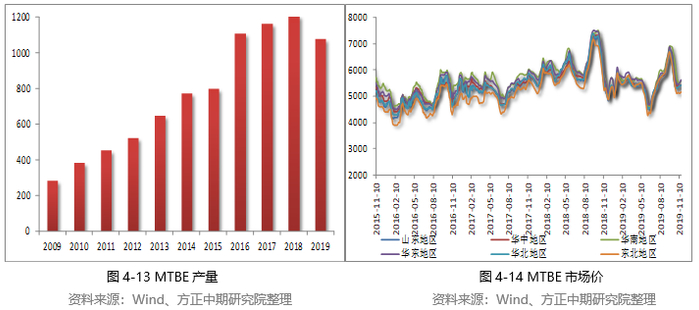 MTBE市场上半年表现平平,但在三季度开始出现明显拉涨,主要是受到供需结构好转的影响。随着MTBE价格上涨至相对高位,下游成本压力增加,中间商原料采购意向不断下降,MTBE价格冲高回落。1-10月份,MTBE累计生产1079.21万吨,略高于去年同期水平7.17%。上半年, MTBE行情表现不佳,价格持续下滑,生产利润面临缩减,厂家竞争压力进一步加剧。进入7月份之后,主营单位汽油外采价格上涨明显,东北地区中石油汽油集采量也较为可观,同时6-7月份汽油出口量增加对于国内市场也产生一定利好,再加上夏季汽车空调用油增加,利好汽油消费,MTBE需求明显好转。而同时市场货源供应不断收紧,MTBE价格强势拉涨。进入9月份之后,汽油步入消费旺季,炼厂汽油订单增加,带动汽油原料的刚性需求也明显增量。MTBE供应依旧紧张,再加上厂家存在预售订单,导致市场供应量不断收紧,MTBE厂家出货顺畅,价格持续上涨。金九银十过后,国内汽油终端消费开始减弱,MTBE行情回归平静。我国MTBE产能已经处于严重过剩状态,接近一半产能闲置,同时生产利润欠佳,后期企业计划投产不多。MTBE对甲醇需求较为稳定,但难以大幅拉升。
