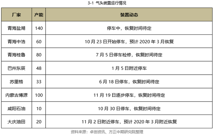 今年装置春季例行检修力度不及往年,无论是从检修装置的数量,还是检修时间来看,对甲醇产量的实际影响有所降低。虽然甲醇价格走低,使得厂家生产利润缩减,但企业生产积极性仍较高,尤其是存在配套下游的企业,西北主产区企业开工率基本维持在80%以上。8月份内地部分装置停车检修,但由于检修期较短,对开工率影响不大。2016-2018年冬季,受到天然气供应问题的影响,甲醇装置开工水平呈现下滑趋势。但2019年随着北方供暖季开始,目前气头企业只有青海中海、黑龙江大庆停车,其余装置多维持运行状态,超出市场预期。甲醇开工率持续回升,将加大供应端压力。