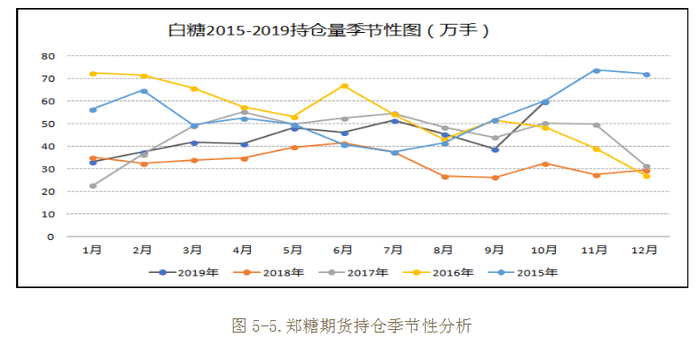 2019年国内白糖基差波幅较大,但现货基本上一直保持升水状态,平均升水幅度在220元左右,最高时超过600元。全年整体上现货销售形势较好,而期货市场由于国储投放以及外糖进口增加两大利空因素的存在,期货糖价长期低于现货。以往看,牛市初期国内市场的基差均为负值,所以基差的变化或许将为糖价是否开始长期走强提供参考信号。
