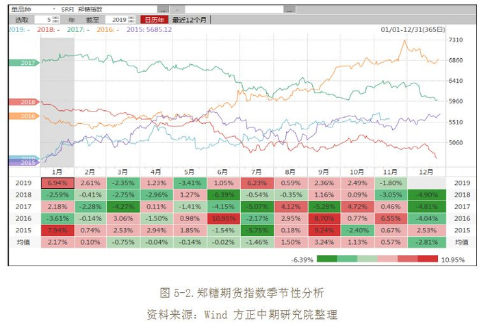 这样,长期看在产糖旺季期间糖价涨跌互现,天气因素对于食糖产量的影响是主要关注题材。但12月因糖厂开榨高峰到来多以下跌走势为主。8~10月份糖厂库存较低,经常出现翘尾行情,在此阶段。糖价上涨的概率较高。