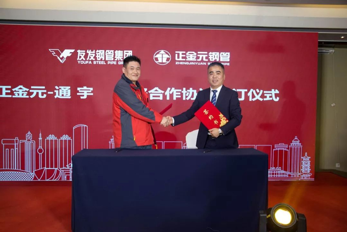 在充分交流唐山正元管业、正金元钢管品牌的相关问题之后,在参会嘉宾的见证下,唐山正元管业与徐州通宇金属材料有限公司现场签署战略合作协议,双方将携手共同推进正金元品牌钢管在徐州市场的未来发展。