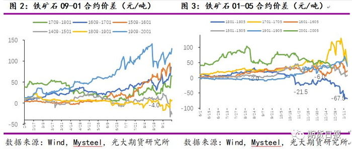 1909—2001合约价差持续扩大。达到新高232元/吨的价差。2001-2005合约价差逐渐收缩,从102元/吨价差收到30元/吨左右。合约价差的变化反应了不同时期铁矿石供需矛盾与预期的变化。