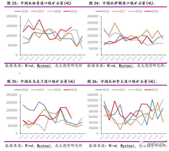 秘鲁:1—10月,中国从秘鲁进口铁矿石量为1265.93万吨,同比增加0.56%。考虑到秘鲁首钢1000万吨铁矿石项目已在2019年5月达产,2020年中国从秘鲁进口铁矿石量有望小幅增加。