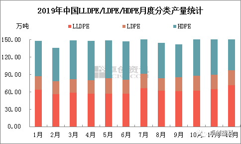 2019年中国LLDPE产量同比增加16.3%,因久泰能源28万吨、中安联合35万吨全密度装置投产后均生产LLDPE,故LLDPE产量增幅最大。