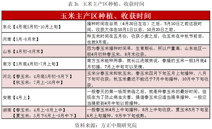(三)我国玉米主产区种植及收获时间表