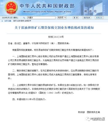 其实,早在2015年4月8日,财政部、国家税务总局就曾发布《关于原油和铁矿石期货保税交割业务增值税政策的通知》(财税[2015]35号),对原油和铁矿石期货保税交割业务暂免增值税。