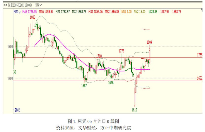 春节之后尿素05合约低开高走,在日线七连阳之后进入窄幅的区间震荡,周五尿素05合约放量增仓上涨,一举突破前期重要的压力位1765元/吨,创出节后的反弹新高,尿素已由前期的下跌趋势明显的转为上涨趋势,尿素的基本面具体发生哪些变化,其背后的上涨逻辑是什么呢?