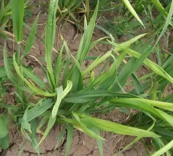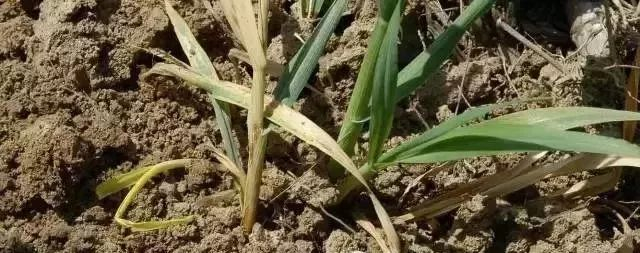 病苗死苗:主要发生在小麦3-4叶期,在第个一叶鞘上呈现中央灰白、边缘褐色的病斑,严重时因抽不出新叶而造成死苗。