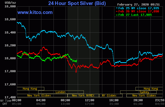24K99(北美)讯 周四(2月27日)美国早盘期货交易中,黄金和白银价格上涨,因为人们纷纷逢低买入本周大幅下跌的黄金和白银。此外,在担心疫情的情况下,交易者和投资者似乎再次进行了避险买盘。