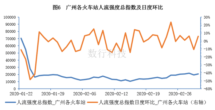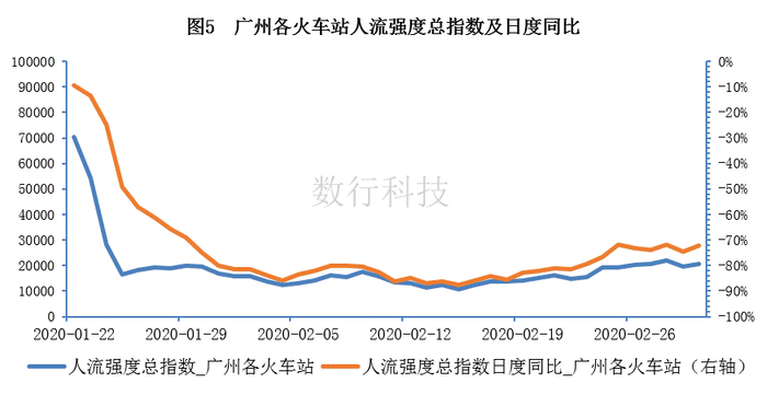 二、广州:火车站人流量有持续恢复趋势,人流量强度在保持低位的同时环比增速多次上涨
