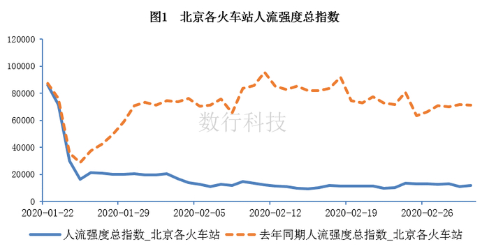 一、北京:2月下旬火车站人流量总体依旧保持低位,2月23号人流量指数环比抬升2.32%,后续保持一波“小高峰”