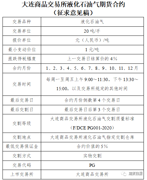 LPG期货合约规则征求意见具体如下: