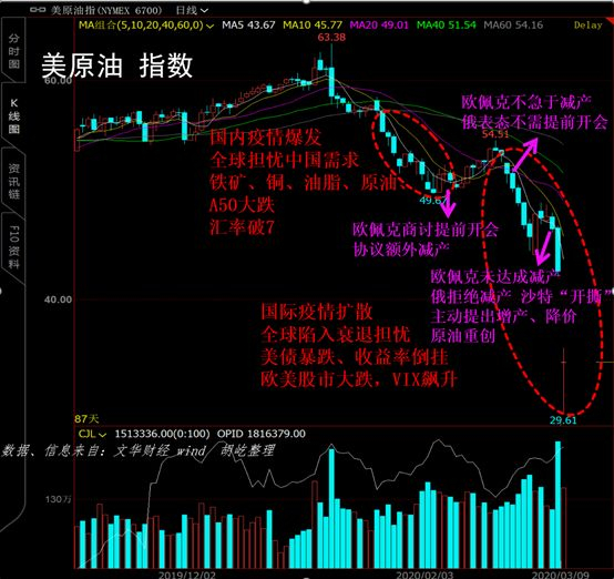 而3月6日以来的加速重挫,则是在欧佩克+会议后,也就是所谓,“屋漏偏风连阴雨”,疫情的问题尚未改善,经济前景预期负面,而市场充分预期的“减产保价”欧佩克联合体也“谈崩”了——