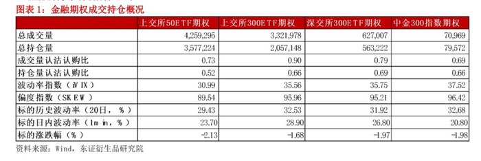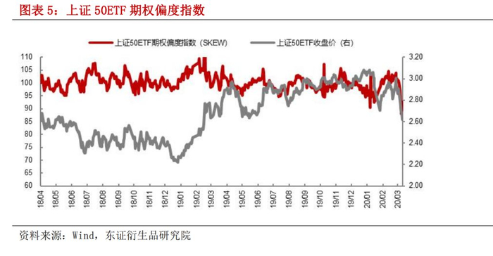 行情点评与展望:建议关注做空隐含波动率首要的一个原因是IV与HV价差推至历史高位,做空波动率的安全边际有了较大提升,虚值的认沽与认购隐波价差也触及10%左右的历史高位。今日早盘降波酣畅淋漓,隐波日内回落至近10个点,而下午随着澳洲股指大跌、美股期货跌停、铜价破位重挫,市场再度波动反复,当前市场情绪较为脆弱,波动率高位反复实属正常,但我们亦可以从今日衍生品市场波动率走势中看出一些关键信息,尽管行情反复,第一,隐波仍有显著下行,说明市场已经开始修复IV的高估;第二,认沽期权的隐波曲线极其平坦,虚值认沽期权隐含波动率甚至出现低于平值的情况,说明市场对底部不愿为下方尾部风险支付超额溢价。