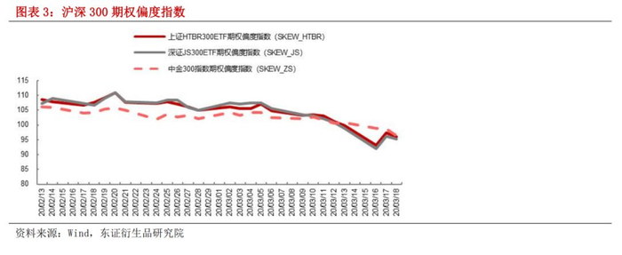 波动率指标数据更新:基于CBOE隐含波动率编制方案所得到的隐含波动率指数、偏度指数与历史波动率方面,上证50ETF期权隐含波动率指数(iVIX)最新一期(3月18日)数据为30.99%,较前日下行6.95%,隐含波动率偏度指数(SKEW)位于89.54,标的20日历史波动率位于29.43%,标的日内已实现波动率为23.70%。沪深300股指期权隐含波动率指数(iVIX)最新一期数据为37.52%,隐含波动率偏度指数(SKEW)位于96.42,标的20日历史波动率位于32.68%,标的日内已实现波动率为20.80%。