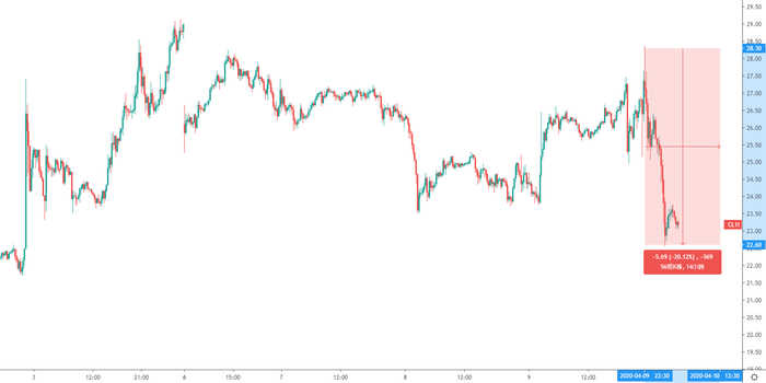 或许是原油期货买预期卖事实,被前期的谣言吊足了胃口,导致对于两个月减产1000万桶不买账;亦或许是协议还没有让各方满意。WTI原油期货上演过山车剧情,北京时间22:30上探28.30高位,四个小时之后却下跌至22.60,跌幅5.7美金。