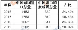 表4 中国进口印度球团占比