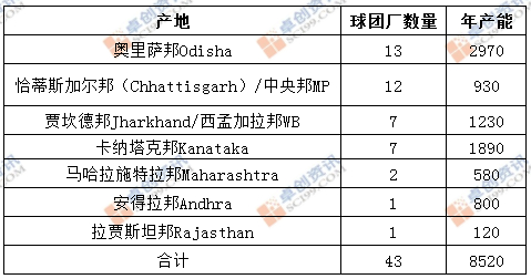 出口到中国的印度球团制造商有奥里萨邦的BRPL(Brahmani River Pellets Limited)、JSPL(Jindal Steeland Power Ltd)、西孟加拉邦的Rashmi Group、卡纳塔克邦的KIOCL(Kudremukh Iron Ore Company Limited)、马哈拉施特拉邦的Essar(Essar SteelIndia Ltd)等。其他产能比较大的制造商还有位于卡纳塔克邦日本JSW Steel Limited的Toranagallu,果阿邦的Mandovi Pellets等。