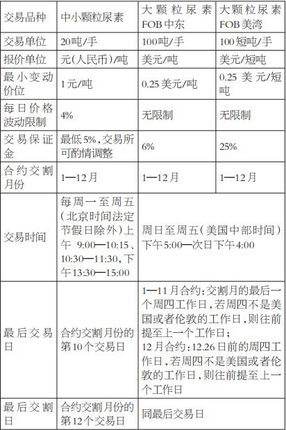 表为CBOT尿素期货合约细节