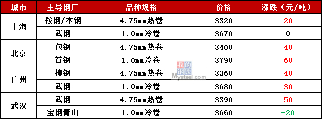6日乐从热卷涨40,4.75以上普柳燕沙3360-3380,2.75普3420-3430,锰卷3570-3580
