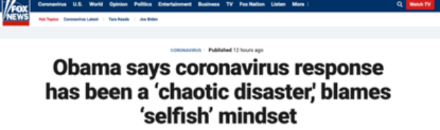 白宫“沦陷”,奥巴马:特朗普疫情应对是“彻底混乱的灾难”