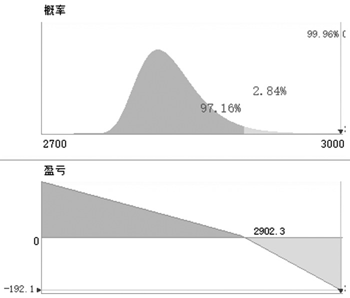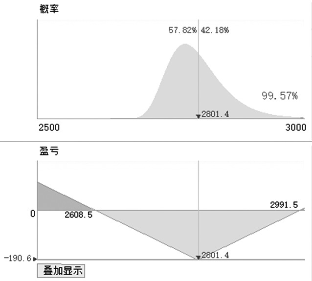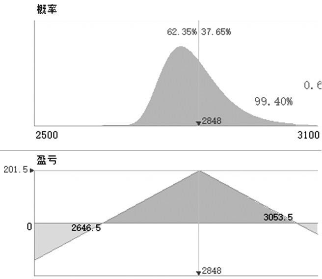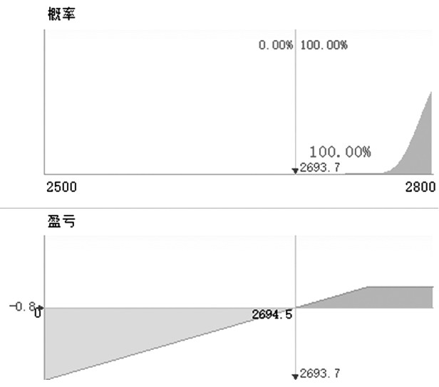 图2买入2850看涨期权同时买入2800看跌期权到期损益