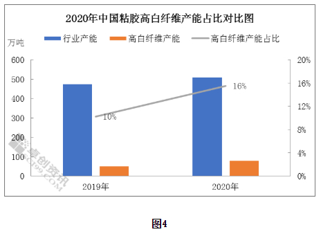 2020年内更多粘胶短纤企业涉及差异化纤维品种,以弱化普纤市场需求及利润收紧,所带来供应及亏损压力,以高白纤维产品为例,截止当前,行业设计产能约79万吨,较2019年末增量约30.5万吨,增长约63%,在整体行业产能中占比约15.5%,同比提升近6%。