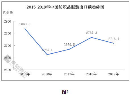 2015年至2019年,中国纺织品服装出口额整体呈震荡下滑态势,其年均复合增长率约1.1%,明显弱于粘胶短纤产能增速。