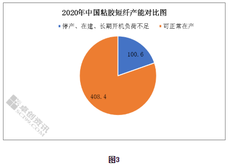 2020年中国粘胶短纤产业合计设计产能约509万吨,而实际可正常在产产能占比约80%,近百万吨产能处于停产、在建,或长期开机负荷不足状态。