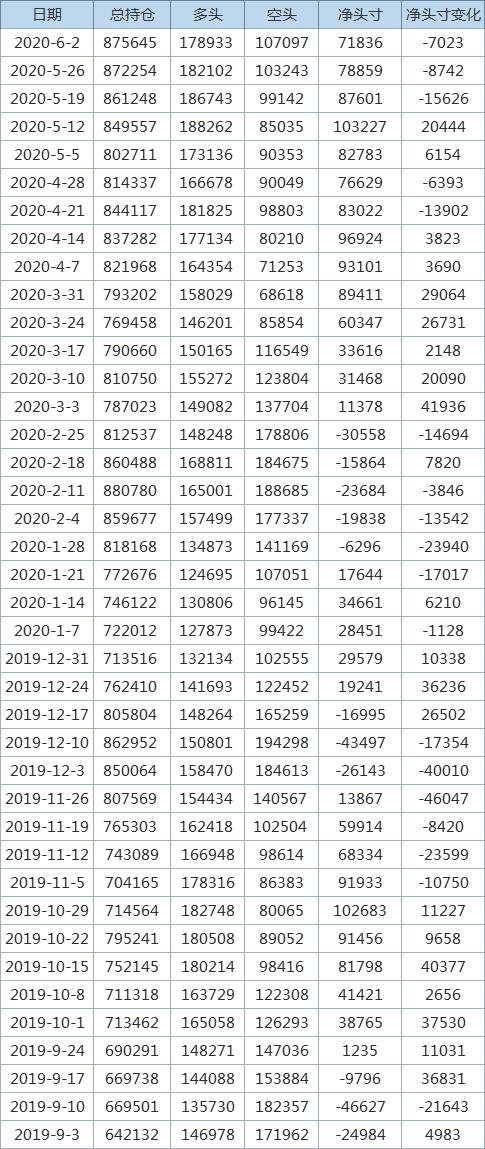 以下为CFTC公布的2019/20年度以来CBOT大豆期货基金持仓净头寸变化一览: