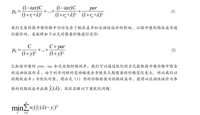 一只国开债的定价公式如下所示,n为付息次数,期限为,每次付息C,(i=1,2…n)为不同期限的即期利率,tax为税率,为流动性溢价(假设流动性溢价对所有期限一样)。