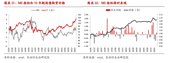(2)MS和MST指标的变动与同期国债期货回报呈现一定程度负相关,而与未来的回报呈显著正相关,说明市场情绪指标具备提示拐点的作用。