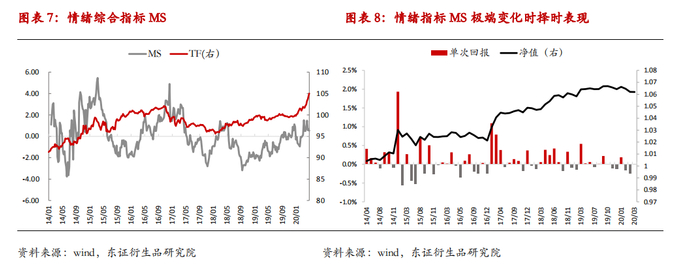 我们此前的统计检验和择时效果的验证的最新日期截至2020年4月30日,从4月30日至6月,国债期货经历了一轮大幅的调整,超出了一些投资者的预期,其实从我们构建的情绪指标来看,在4月中旬,MS指标就已经反映出了市场情绪的反转,这也验证了我们构建的指标的有效性。