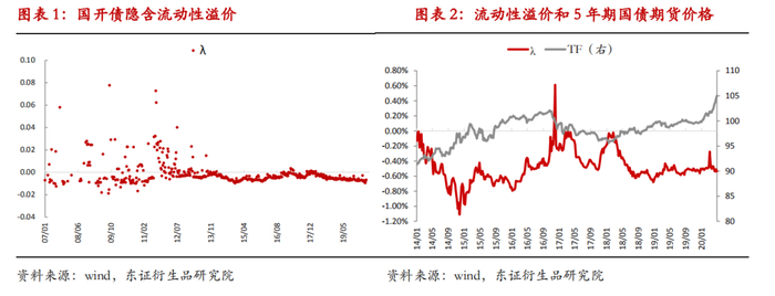 由于5年期国债期货于2013年上市,所以我们取2014年之后的国开隐含流动性溢价和5年期国债期货价格进行对比。可以看出,牛市区间的流动性溢价是要低于熊市期间的流动性溢价的。
