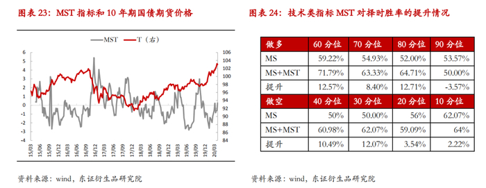 对于10年期国债期货MST指标也同样可以在有经济含义的MS指标的基础上能够提高择时的准确率,最高可以提升择时胜率12.71%,所以我们再一次证明了我们构建的这两类市场情绪指标可以很好地描绘市场情绪,并具备一定程度的择时能力。