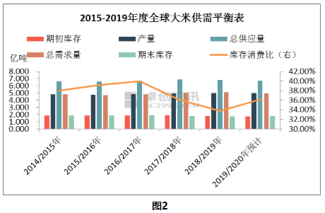 据卓创资讯数据监测,2019年度全球大米供应总体宽松,年度供应总量约为6.69亿吨,年度全球大米年度总需求量约为4.91亿吨。从供需数据看来,近年来全球大米供应充足,个别年份受到厄尔尼诺现象多个主产国有所减产。2019年度,尼日利亚、菲律宾、泰国、巴西、中国、印度、美国稻米产量受到天气影响,全球总产量、供应量略低于去年。
