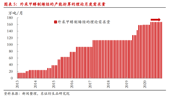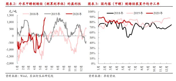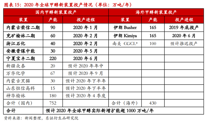 上半年仅吉林康乃尔的MTO装置投产,接下来虽然还有甘肃华亭、天津渤化等新增装置的投产预期,但根据建设进程推断,装置正式释放需求很可能要推迟到2021年,下半年我们暂时看不到甲醇制烯烃领域明确的增量需求预期。