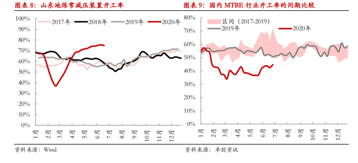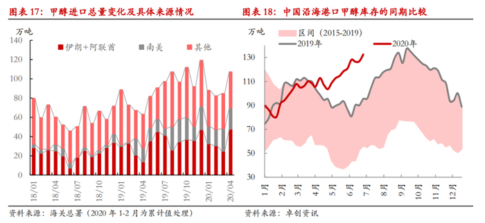 疫情影响之下的需求下滑自2月开始,3月之后的海外需求崩塌对冲掉了国内需求的缓慢复苏,直至5-6月间,全球甲醇需求仍较疫情前偏低10%左右,这意味着需求恢复仍有空间,只是恢复速度或将缓慢进行。