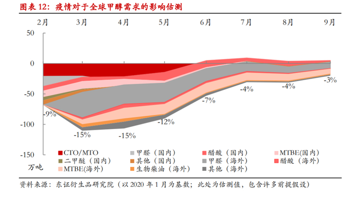 新冠疫情影响之下,甲醇的化工属性需求与能源属性需求都受到了冲击,根据对国内甲醇各下游的追踪,再外推至海外需求,我们大体可以勾勒出新冠疫情对于全球甲醇需求的冲击程度。