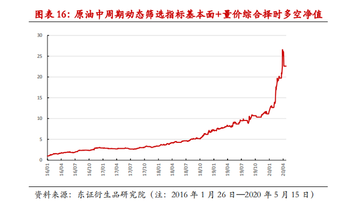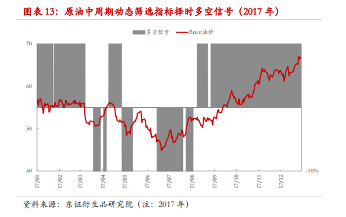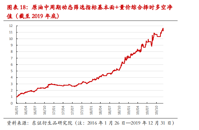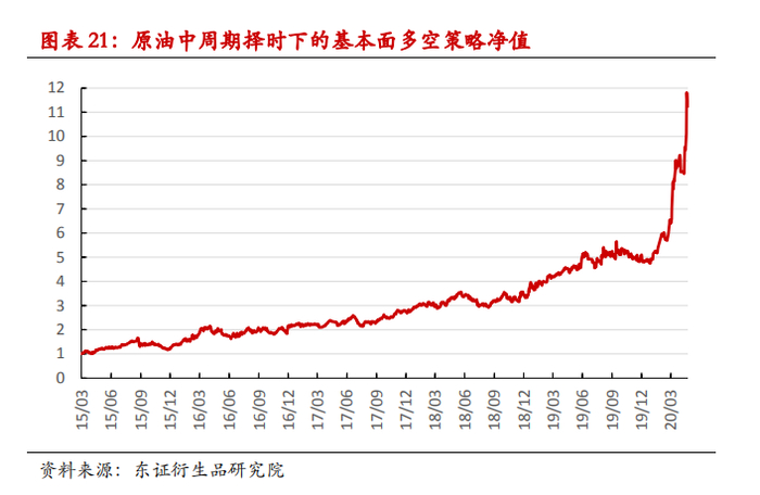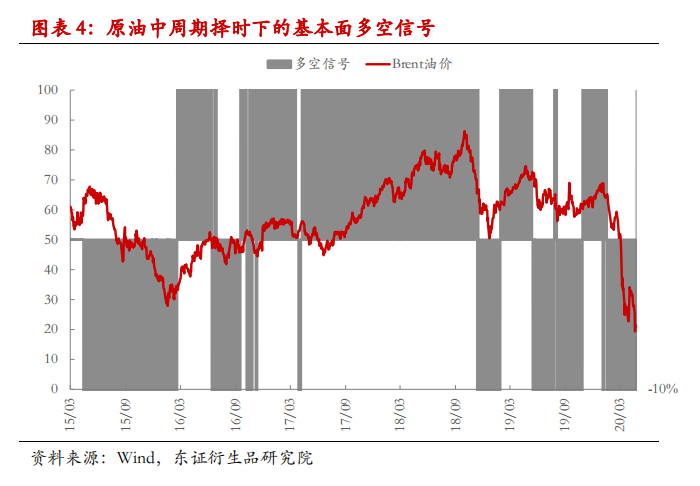 长周期这里指预测未来60个交易日,即季度周期的择时。基本面决定了资产价格在中长期的走势,可以根据基本面量化来判断原油价格当前处于长期的上涨还是下跌周期,可以作为长周期大类资产配置策略的参考。