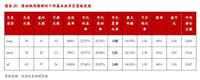 择时效果稳健,仅依靠基本面信号年化夏普就能达到2.63。即使剔除2020年大跌行情的做空获利,2016至2019年原油择时效果仍然非常显著。