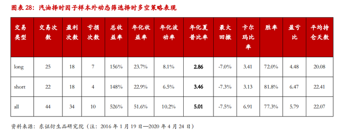 此外,原油贸易、运输环节的数据也有择时效果,包括“美国周度成品油净出口量”, “中东至中国VLCC运费”。