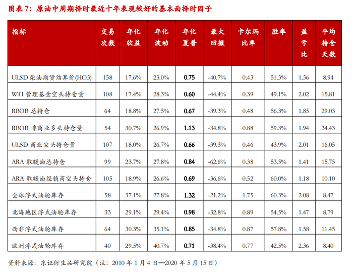 哪些基本面指标对原油有长期稳定的择时效果?基于对多种商品“基本面+量化”综合研究,我们发现不同商品的择时指标有共性也有特性,而原油是代表性品种。