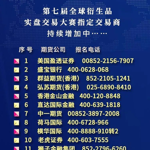全球赛方面,截至7月8日,芝商所专项奖中,美国盈透证券的“国发中金”账户暂居WTI原油期权组第一,中国国际期货(香港)的“勇往直前”账户暂居CBOT大豆期货组第一,美国盈透证券的“国发中金”暂居COMEX黄金期权组第一,元大期货(香港)的“衍盛中国CTA-1”账户暂居澳元/美元期货组第一,雪盈证券的“雪盈971025”账户暂居微型E—迷你纳斯达克100指数期货组第一,香港金山金融的“William”暂居10年期美国国债组第一。在马交所的毛棕榈油收益额排行榜上,暂居第一的是中一期货的“豁达心态”账户。在毛棕榈油交易量排行榜上,来自中国新永安期货的“不灭君王”账户暂居第一。新交所的三个单项奖中,股指期货组暂居第一的是中一期货的“整股砖佳”账户,外汇期货组暂居第一的是中大期货(香港)的“TD”账户,商品期货组暂居第一的是新加坡凯基证券的“搬砖工”账户。