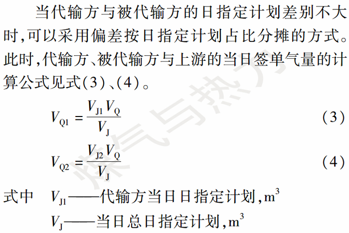 采用混合下载代输模式时,在签单时的偏差分配可以采用下列3种形式之一:偏差由单方全部承担、偏差按日指定计划占比分摊、被代输方按实际接气量签单。