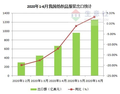 从纺织行业来看,据了解,6月全国服装鞋帽、针纺织品类零售总额1059亿元,较去年同期相比降幅0.1%,1-6月全国装鞋帽、针纺织品类零售总额5120亿元,同期相比降幅19.6%。出口方面,在口罩、防护服等相关防疫物资出口大幅提升的带动下,我国纺织品服装出口实现年内首次同比正增长。据我国海关数据显示,2020年1-6月,我国纺织品服装累计出口额为1251.88亿美元,同比增长3.16%,其中纺织品累计出口额为741.033亿美元,同比增长27.81%。