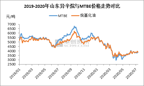 首先2019年工业异辛烷需求1013万吨,MTBE需求量1267万吨,MTBE略高。其次MTBE2019年出口量在17万吨,2020年截至6月出口量在7.7万吨。MTBE可以进出口,套利打开时,出口可以缓解国内供应压力。再次工业异辛烷供应均来自国内需求,MTBE国内、出口相对多样化。最后工业异辛烷均是用于汽油调和,MTBE可以用作汽油调和,MMA、叔丁醇、异丁烯,以及医药级。