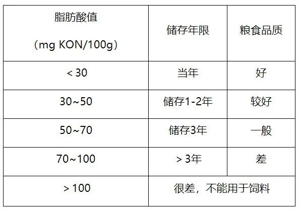 粮食陈化的主要判定指标是脂肪酸、粘度和品尝评分值,三项有一项指标达到“陈化”规定的,即认定为“陈化粮”。其中脂肪酸值作为一项较为灵敏的可客观检验的指标,可作为判定粮食品质变化的主要参考指标。